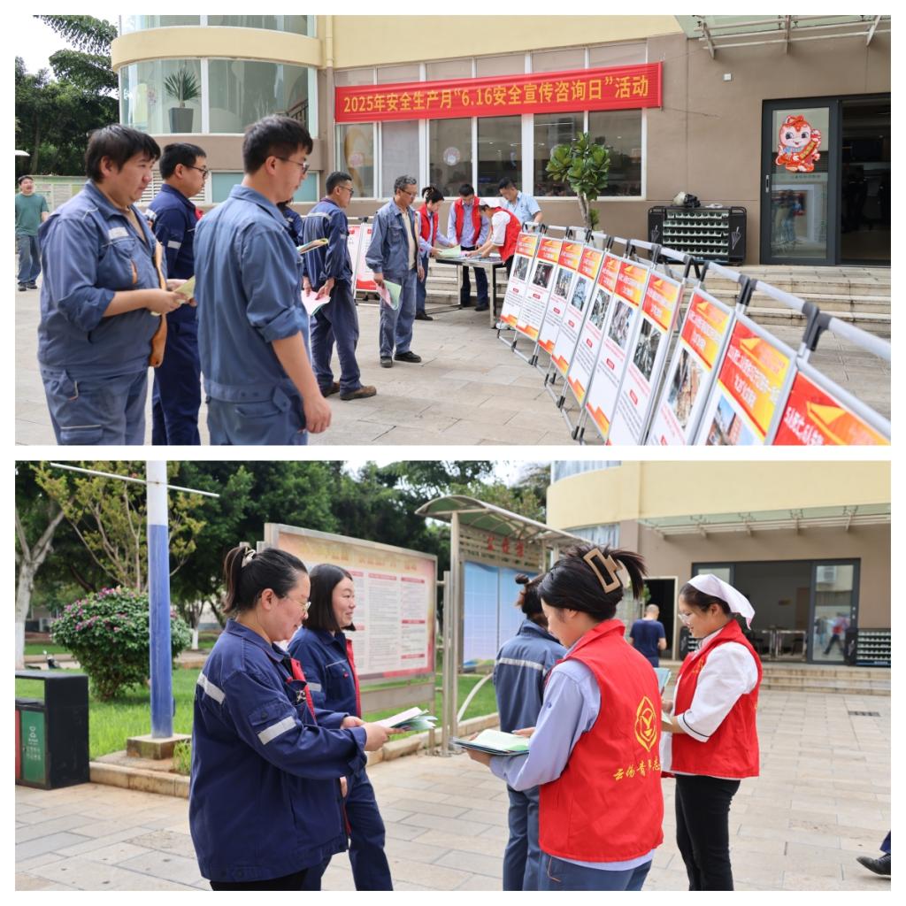 6月16日是全國安全宣傳咨詢日,云錫各單位圍繞“人人講安全、個個會應急——查找身邊安全隱患”主題,積極開展現場咨詢、互動競答、安全演練等形式多樣的宣傳活動,普及安全知識,強化全員安全意識,推動安全生產責任落實,營造平安工作、幸福生活的濃厚氛圍。