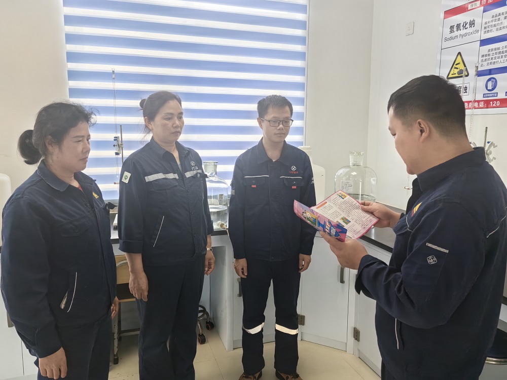 文山鋅銦冶煉公司質檢中心組織安全員解答安全生產、應急處理、職業健康等方面問題,發放安全宣傳手冊,讓安全理念入腦入心。(張靜)