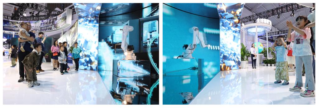 科技互動嘆為觀止。作為云錫展臺的“實力擔當”,XR算力探秘空間前總是排起長龍。伴隨著充滿節奏感的金屬音效,機械臂與視頻聯袂演繹從礦石到芯片的錫銦“智造”全流程,讓觀眾直呼“顛覆認知”,紛紛感嘆:“原來手機里的每一個觸點都有錫的貢獻!”