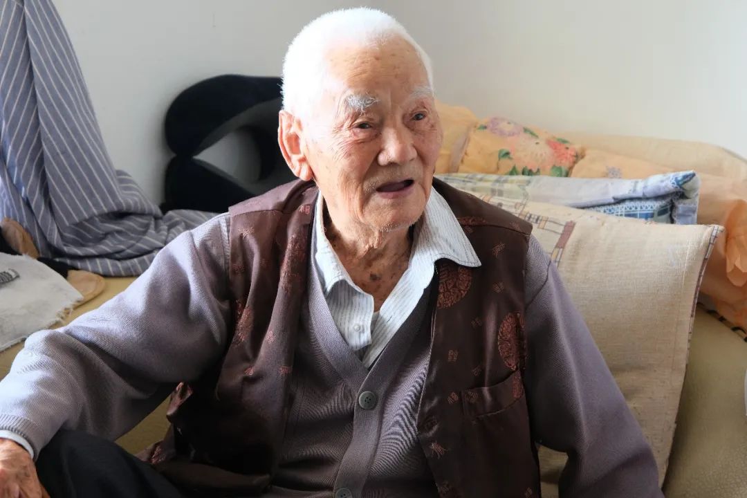孫勇與姜保安一起追憶那段崢嶸歲月里的抗戰經歷并祝愿姜保安身體健康、心情愉快。當回憶到1943年加入新四軍抗擊日寇時,姜保安激動不已,“感謝黨,感謝政府,我現在一百歲了,組織依然牽掛著我”。