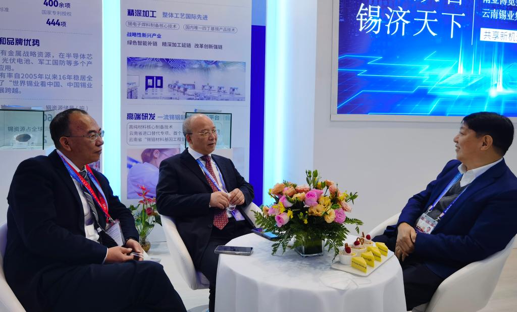 當天上午,云錫控股公司黨委書記、董事長孫勇出席大會開幕式。隨后,孫勇與中國銅業黨委書記、董事長許波,云南省能源投資集團總裁、副董事長謝一華參觀云錫展區,并向來賓介紹云錫新材料產業發展情況。孫勇談到,云錫積極用好國際國內“兩個市場”,通過精深加工延鏈,不斷鞏固錫產業鏈龍頭地位。云錫將借助南博會這一越來越開放的平臺,在建設面向南亞、東南亞輻射中心的時代征程中展現國企擔當,依托全球錫資源,立足科技創新,不斷提升高質量發展內驅動力,為百年云錫再創輝煌提供堅實保障。