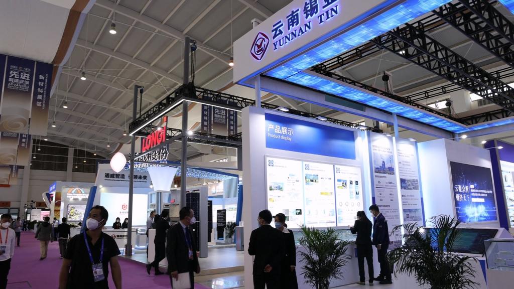 在9號館——先進制造業館,云錫以“云聚眾智 錫濟天下”為主題布展,藍白輝映、簡潔大氣,圖文并茂、聲影相宜,精心遴選陳列BGA焊錫球、高純銦、ITO靶材、高純砷等產品,立體展示錫深加工產業和錫銦新材料研發兩大板塊,全力打造云錫精深加工和高端研發的科技品牌形象。乘著南博會的強勁東風,云錫勢必以更加開放、更加昂揚的奮進姿態,積極與云南周邊國家和地區深化合作共贏,推動云南有色金屬高端原材料和精深加工新材料產業引領者的品牌定位不斷深入人心。