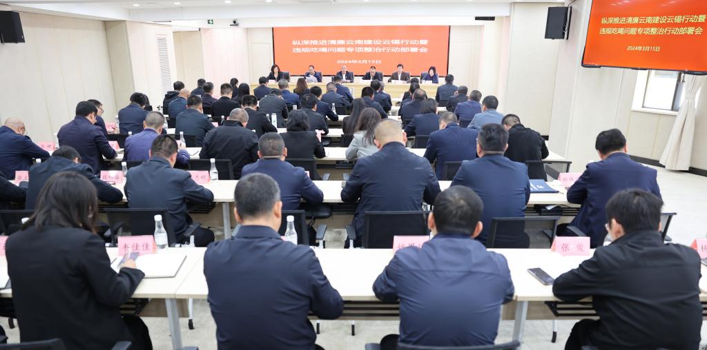 3月15日,控股公司在昆明總部14樓會議室召開縱深推進清廉云南建設云錫行動暨違規吃喝問題專項整治行動部署會。深入貫徹落實省委縱深推進清廉云南建設暨全省正風肅紀警示大會和省國資委省屬企業違規吃喝問題專項整治行動動員部署視頻會的會議精神和工作要求。縱深推進清廉云南建設云錫“十大行動”,構建山清水秀的政治生態,營造干事創業的良好環境。控股公司黨委書記、董事長孫勇出席會議并提要求。