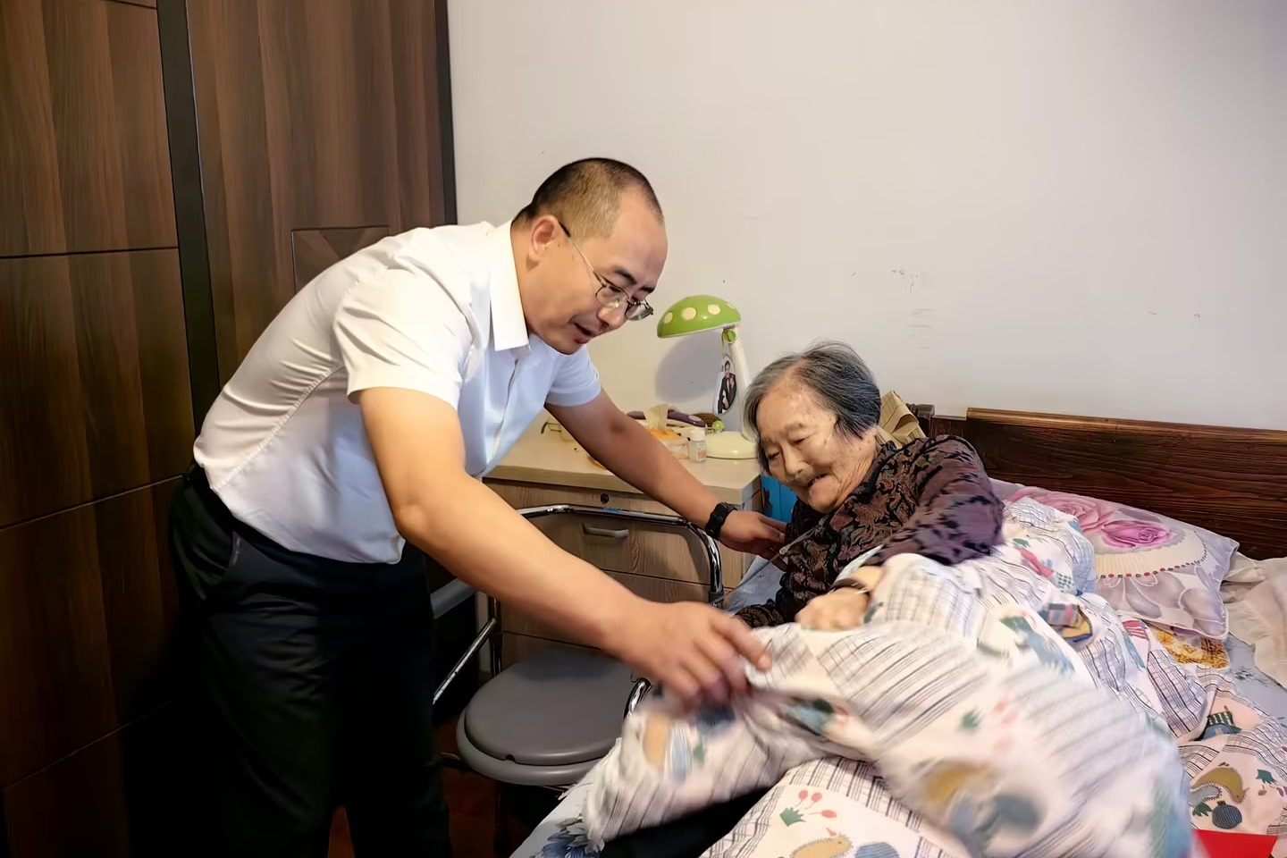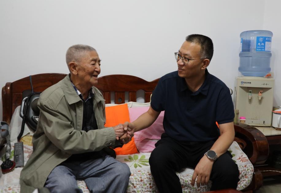 控股公司副總經(jīng)理楊濤走訪慰問離休干部胡定英(李雯/攝)
