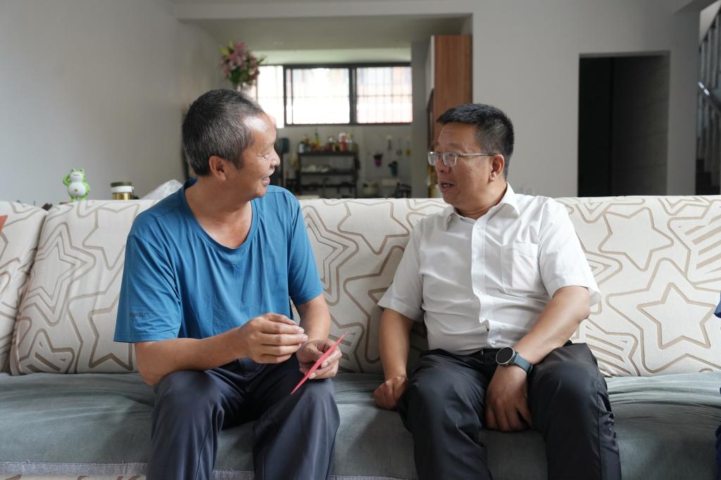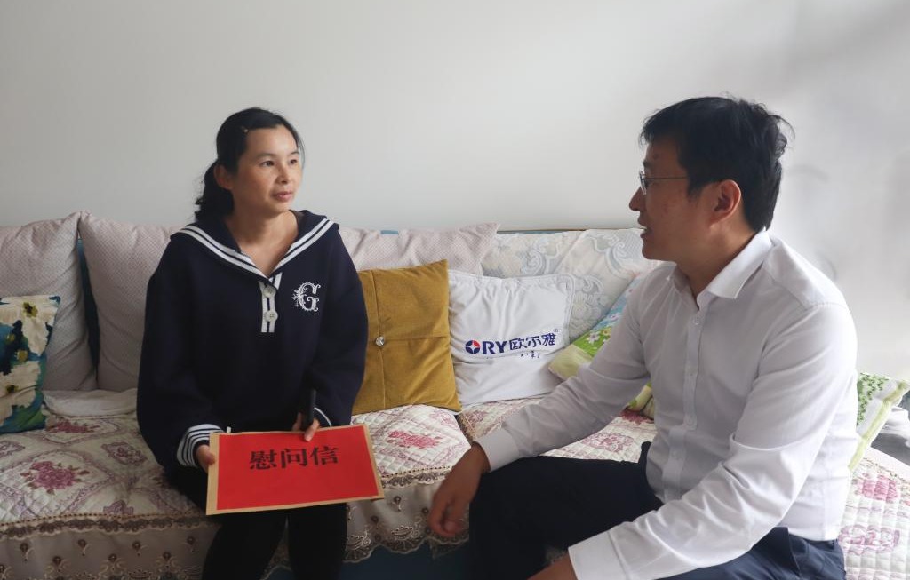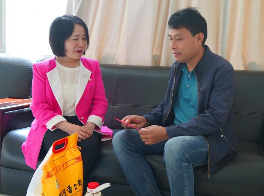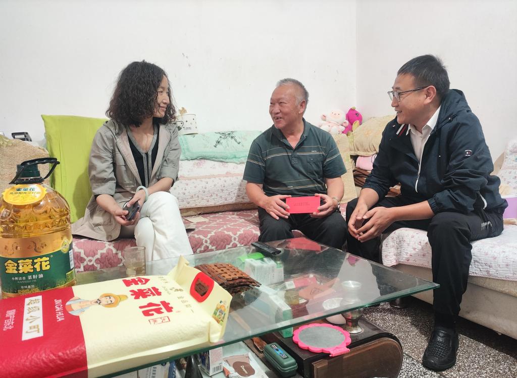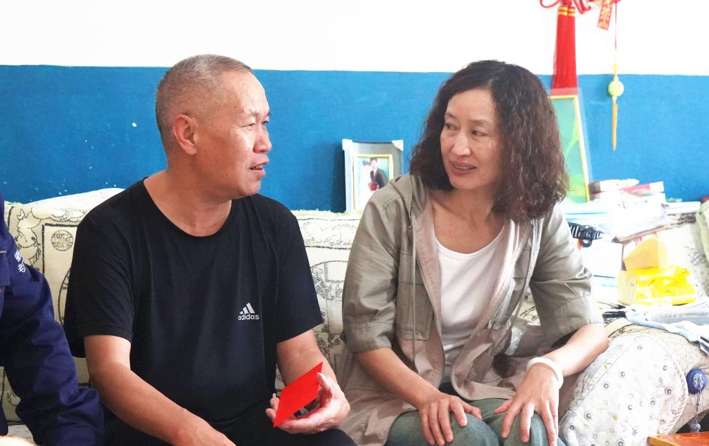 控股公司黨委委員、財務(wù)總監(jiān)胥翠芬走訪慰問退休困難人員黃喬有(程雪銳/攝)
