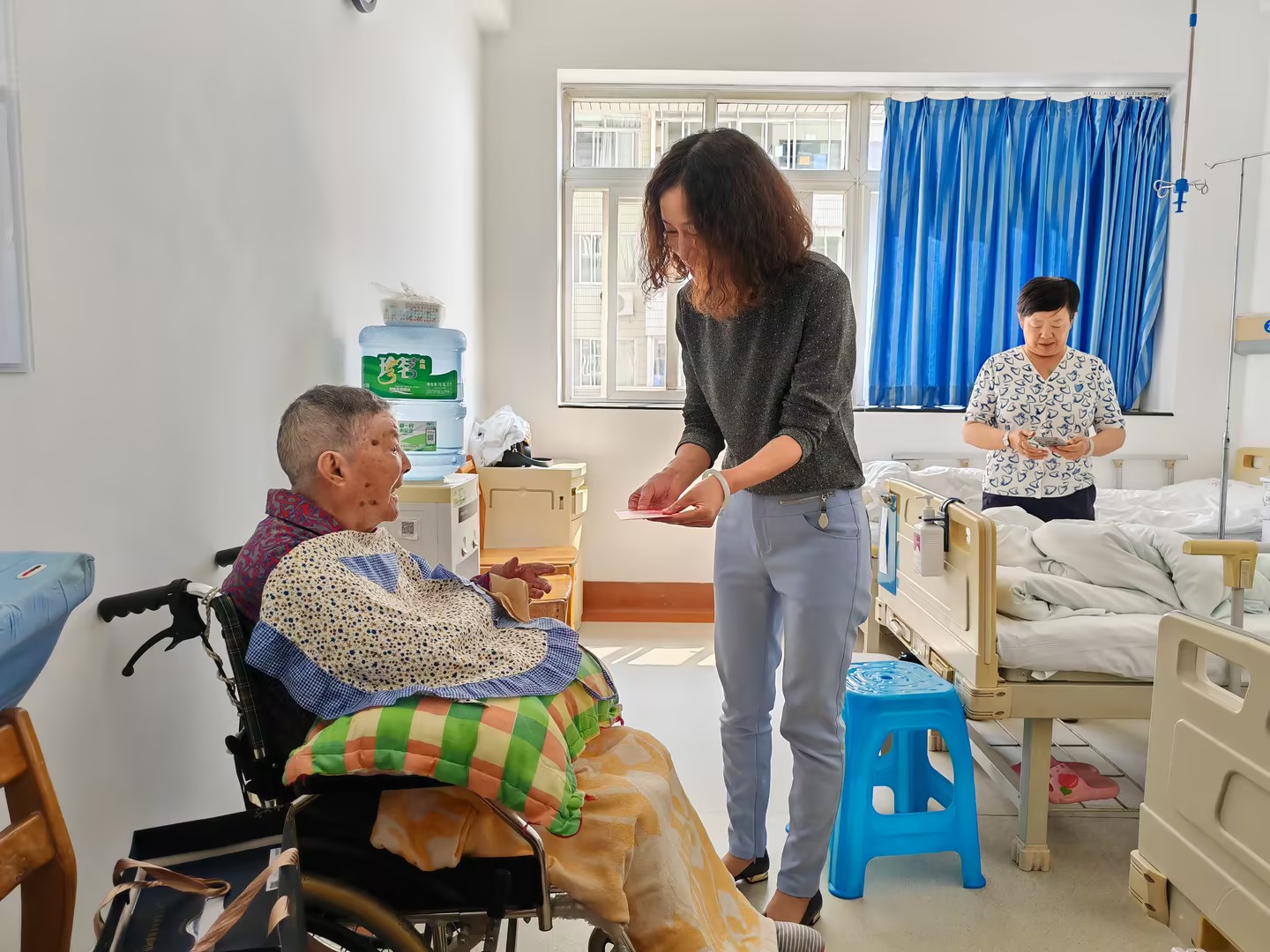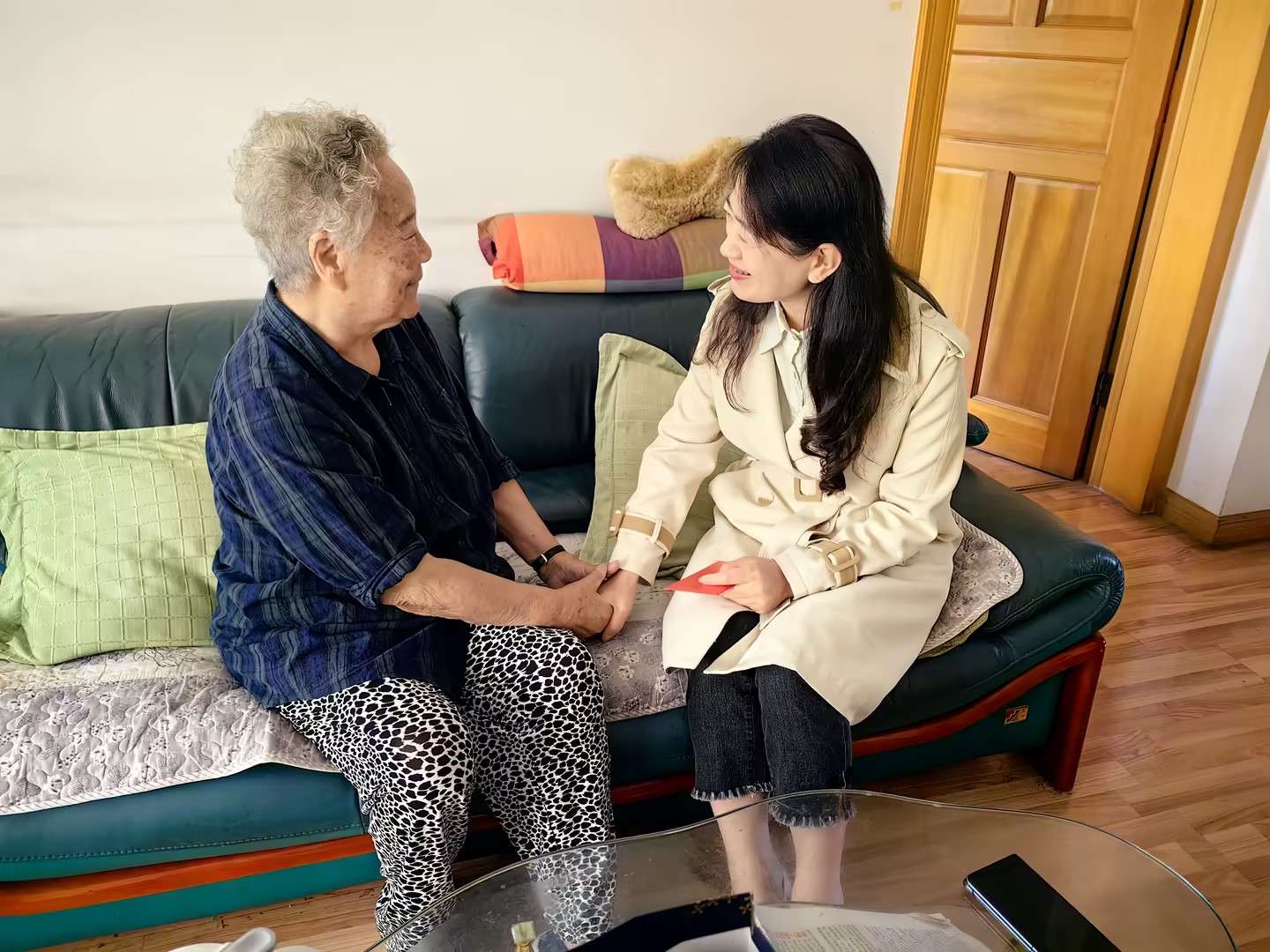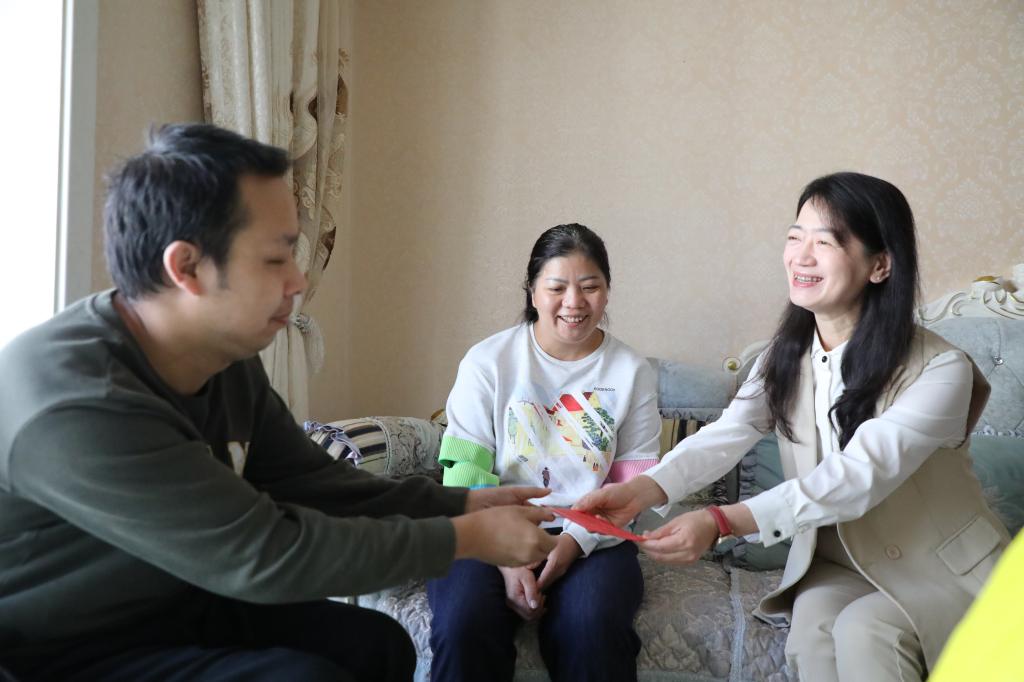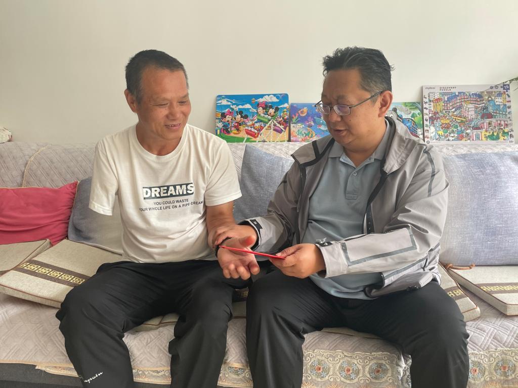 控股公司黨委委員、財務(wù)總監(jiān)胥翠芬走訪慰問退休困難人員黃喬有(程雪銳/攝)