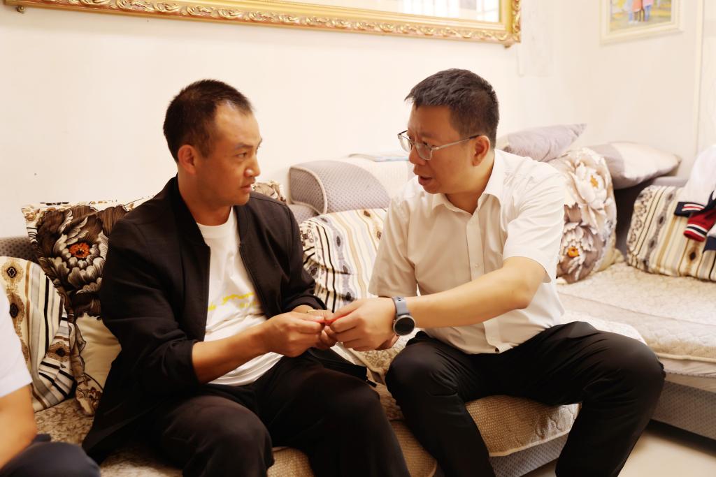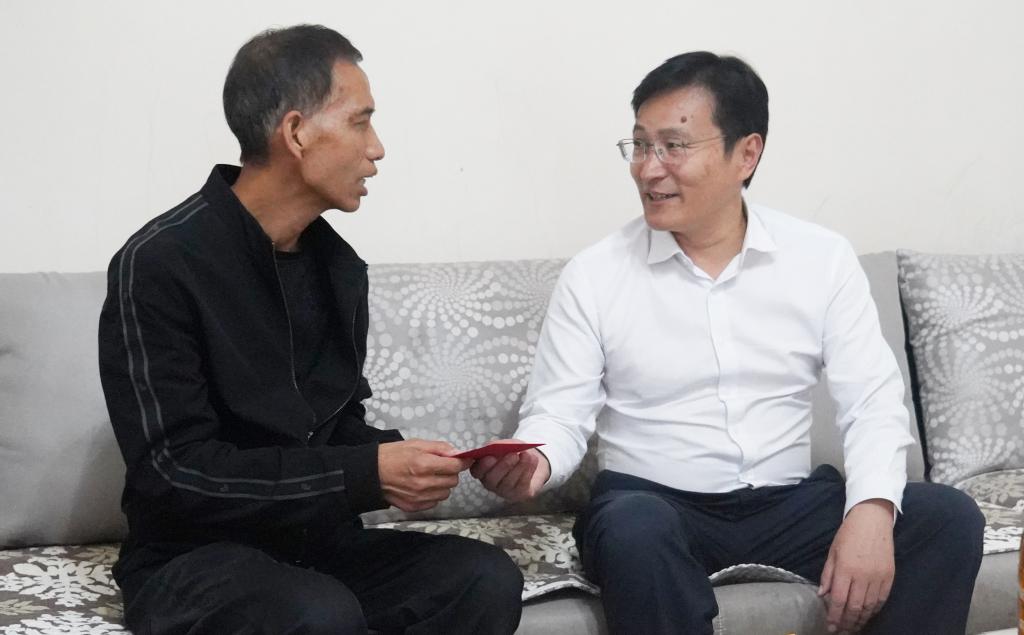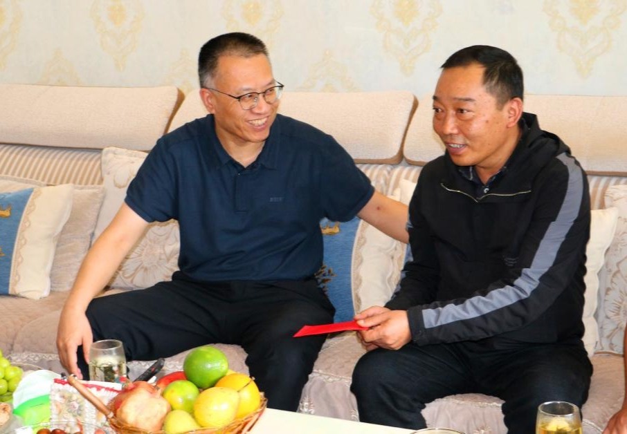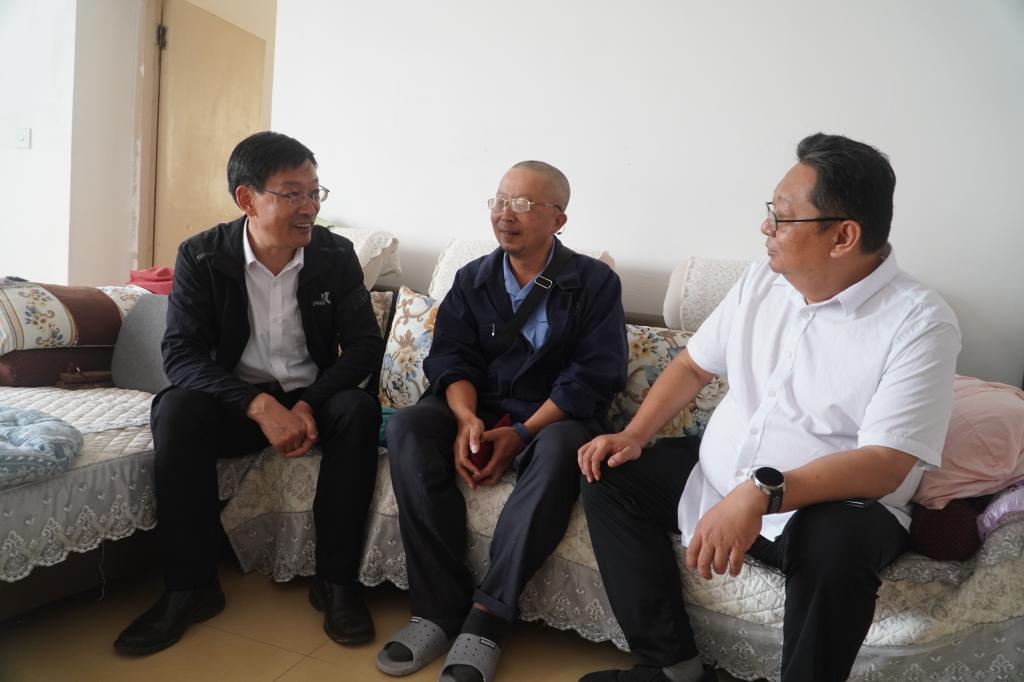 控股公司黨委委員、副總經(jīng)理宋興誠走訪慰問錫都實業(yè)全國先進(jìn)生產(chǎn)者佟福科(徐純/攝)