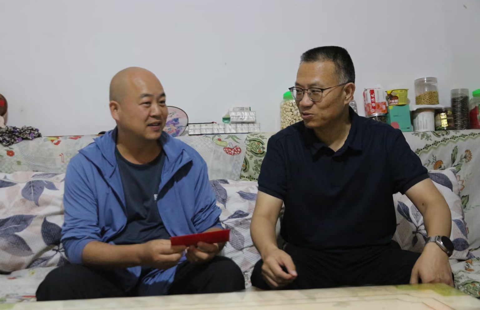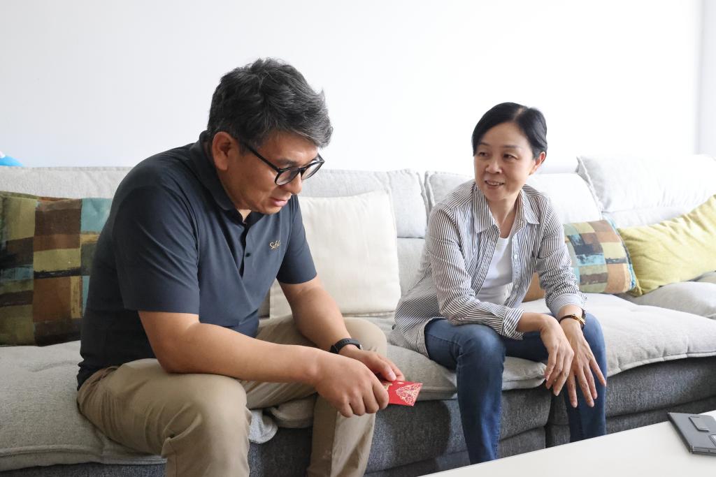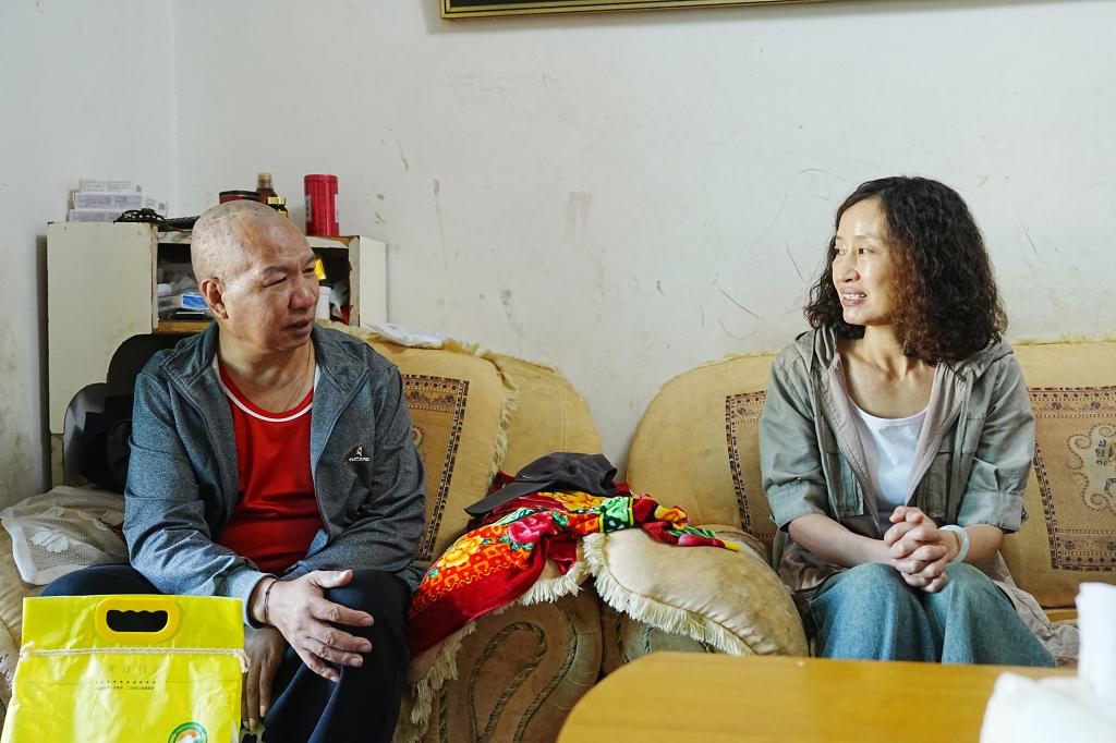 控股公司黨委委員、副總經(jīng)理吳君走訪慰問物流公司困難職工馬純德(彭金睿/攝)