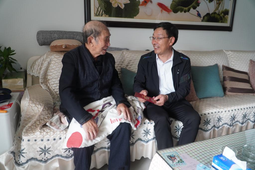 控股公司黨委副書記、工會主席劉俊走訪慰問離休干部馬天慶(彭金睿/攝)