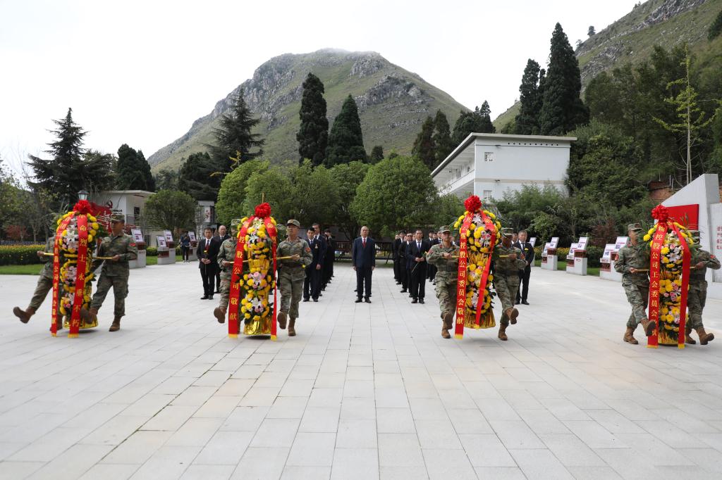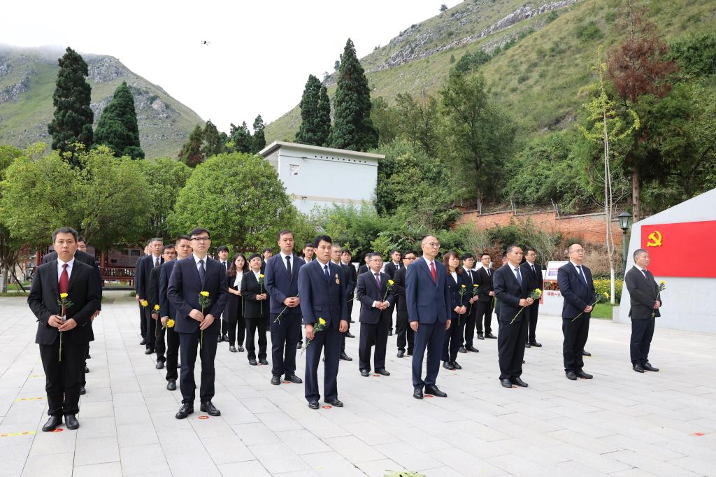在慶祝中華人民共和國成立75周年之際,控股公司烈士紀念日向革命烈士敬獻花籃儀式于9月30日上午在“中共個舊錫礦特別支部”愛國主義教育基地舉行??毓晒军h委副書記、工會主席劉俊,總經理助理李師勇與各類代表一起出席儀式,向李鑫、戴德明、楊逢春烈士群雕敬獻花籃,深切緬懷革命先輩豐功偉績,激勵全司干部職工為創建錫銦行業世界一流企業貢獻力量。