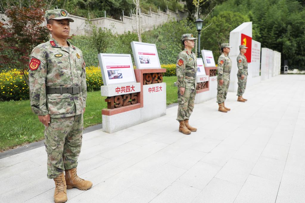“禮兵就位!”隨著號令,禮兵邁著鏗鏘有力的步伐,正步行進到紀念碑旁佇立。