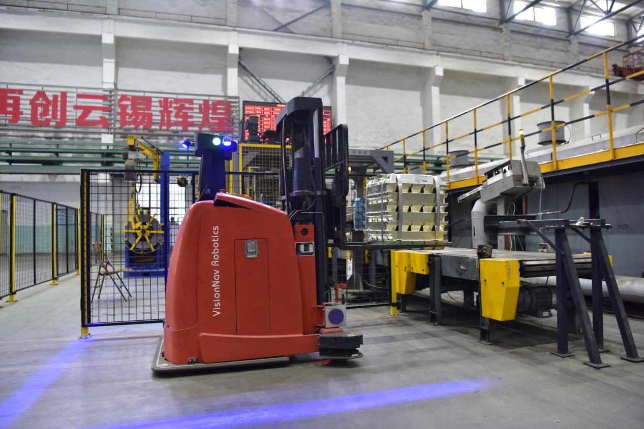 (錫業分公司5G智能倉儲配套設備——AGV運送錫錠)