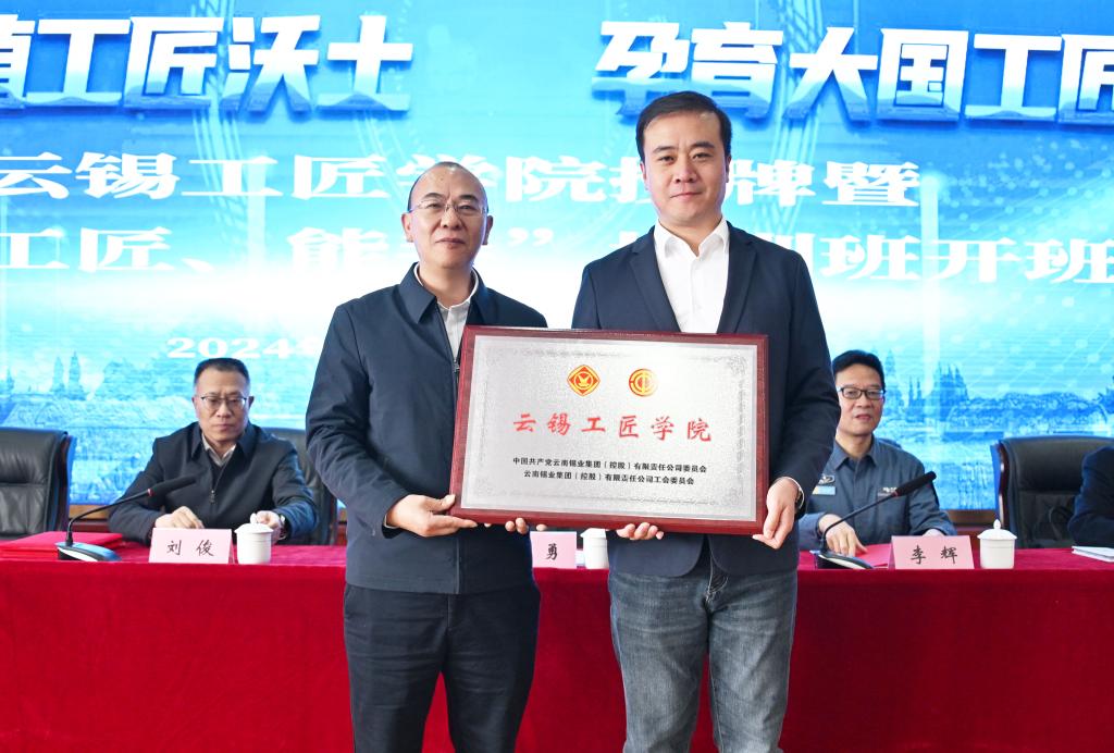 控股公司黨委副書記、工會主席劉俊宣讀成立云錫工匠學(xué)院的文件。