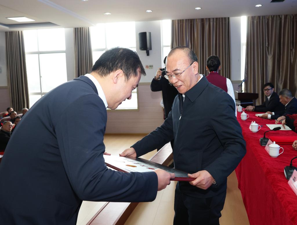 主席臺就坐領(lǐng)導(dǎo)為云錫工匠學(xué)院及實訓(xùn)基地授牌,為李輝及首屆全國輕工大國工匠、昆明理工大學(xué)孫鴻雁教授頒發(fā)特聘工匠導(dǎo)師證書。