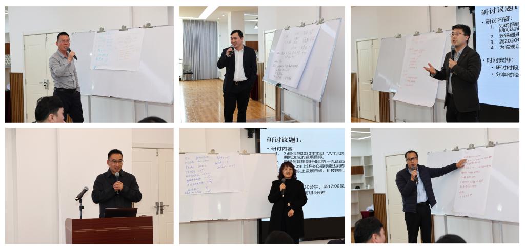 控股公司總經(jīng)理助理、副總會計師、安全副總監(jiān),兩級總部各部門(中心)負(fù)責(zé)人,各直管單位、所屬單位黨政主要負(fù)責(zé)人,以及各主要駐外單位負(fù)責(zé)人分為6個小組,以秉承“開放交流、信息共享”的原則,圍繞“十五五”暨“八年大跨越”階段發(fā)展目標(biāo)、“十五五”期間重點業(yè)務(wù)方向、需要強化的協(xié)同能力等進(jìn)行交流研討,集思廣益、各抒己見,既有藍(lán)圖描繪、更有舉措細(xì)化,既有目標(biāo)謀劃、更有數(shù)據(jù)分析,為后續(xù)開展好云錫“十五五”乃至中長期戰(zhàn)略謀劃及業(yè)務(wù)執(zhí)行提供重要參考。