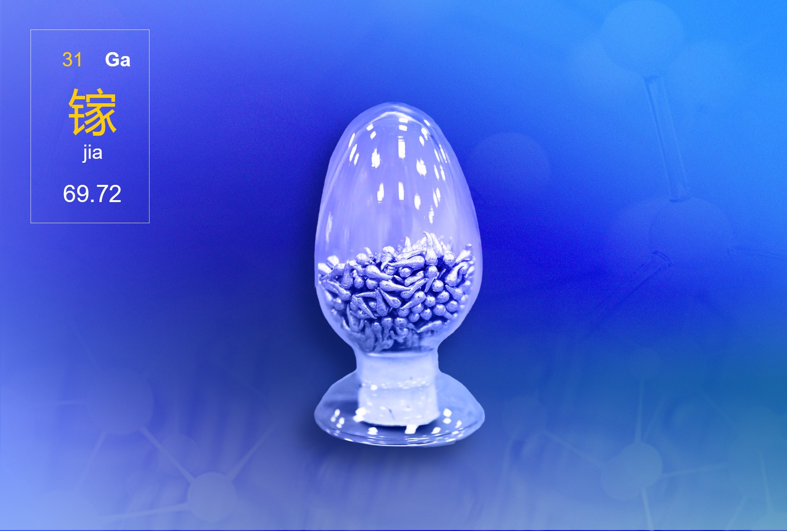 用途:斜方晶型,各向異性顯著,0℃的電阻率沿a,b,c三個軸分別為1.75×10-6?m,8.20×10-6?m和55.30×10-6?m。超純鎵剩余電阻率比值ρ300K/ρ4.2K為55000。主要用于電子工業和通訊領域,是制取各種鎵化合物半導體的原料,硅、鍺半導體的摻雜劑,核反應堆的熱交換介質。